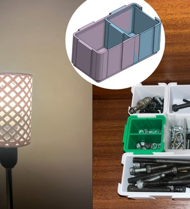 Design and prototyping of small consumer product concepts including lighting fixtures and functional storage solutions. These projects explore practical product design considerations such as usability, assembly, and manufacturability.