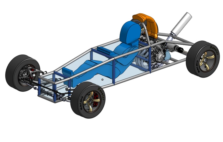 Independent end-to-end design project for a lightweight GSXR-powered single-seater concept. The project explores the architecture and integration of a small formula-style race car, including chassis layout, suspension geometry, powertrain packaging, and aerodynamic bodywork concepts.